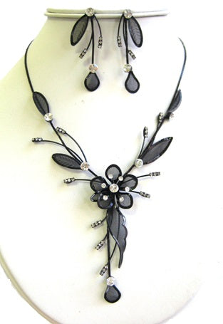 Delicate and dramatic, this black mesh flower "Y" necklace adds a touch of elegance to any outfit. Paired with matching earrings, it's the perfect statement set for evening wear or elevating your everyday look.